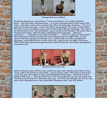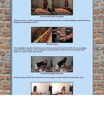Shannon is an extremely amateur female-dominant. Her fetishism only comes out in verbal commands or humiliations. There is hardly any fetish attire. Sometimes the scenarios have a good deal of female dominance. There are even instances of cuckolding. Most of the website focuses on her and sometimes up to four of her friends playing with a man's penis. The action is seldom more hardcore than that, so Shannon's Handjobs is perfectly named. If handjobs given by clothed females isn't that exciting, then the website would be a place to avoid.